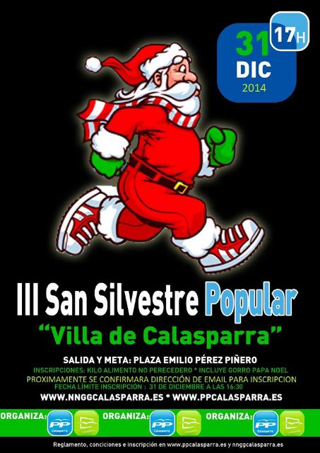 Nuevas Generaciones y el Partido Popular de Calasparra han organizado para el próximo 31 de Diciembre la III carrera San Silvestre popular “Villa de Calasparra”