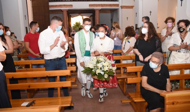 Asociaciones, colectivos, Ayuntamiento, vecinos y vecinas de Calasparra se vistieron con el traje tradicional huertano y obsequiaron a los patronos de la localidad con flores, con motivo del inicio de las fiestas patronales en su honor.