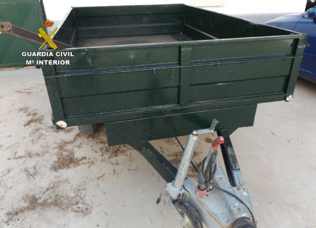 La investigación se inició en diciembre del pasado año, cuando guardias civiles de los equipo ROCA de Caravaca de la Cruz tuvieron conocimiento del robo cometido en una explotación agrícola del municipio de Cehegín, de donde fueron sustraídos un remolque ligero valorado en más 3.000 euros y combustible. El recinto resultó con daños de consideración.
