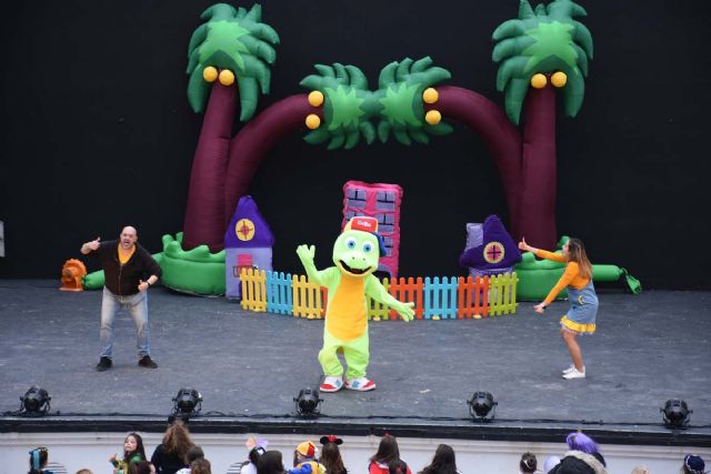 Durante la tarde las niñas y niños de Calasparra pudieron disfrutar del musical 1, 2, 3, Cantemos otra vez, que subió al escenario Drilo el cocodrilo, Dora la Exploradora y Pocoyó, entre otros muchos personajes famosos entre el público infantil. Y por la noche Calasparra celebró su Carnaval, en una fiesta que paseó por las calles y lugares más concurridos de la localidad y que se extendió hasta la madrugada.
