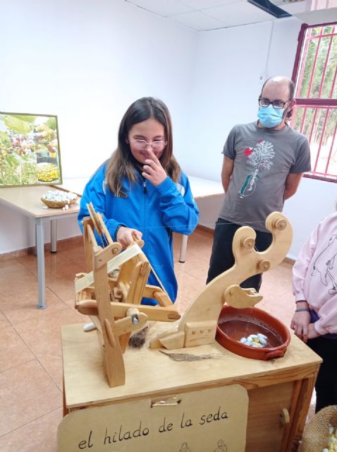 El alumnado ha podido disfrutar viendo de primera mano todos los estadios del ciclo de vida del gusano de la seda y experimentar con la maquinaria tradicional, con la que en nuestra Región se trataba la elaboración de este hilo.