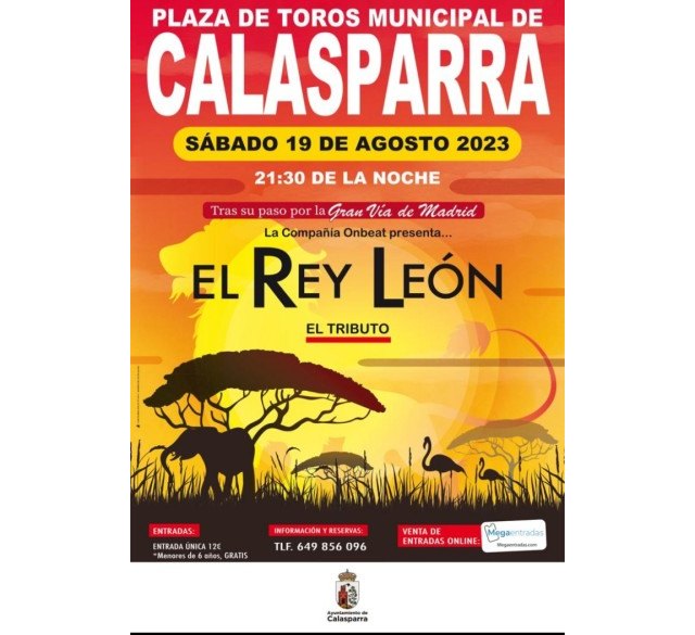 El Ayuntamiento de Calasparra ha presentado esta mañana la representación del musical 'El Rey León. El tributo', que la compañía Onbeat pone en escena el próximo 19 de agosto en la Plaza de Toros Municipal instalada junto al Campo de Fútbol, como un espectáculo dirigido para toda la familia.