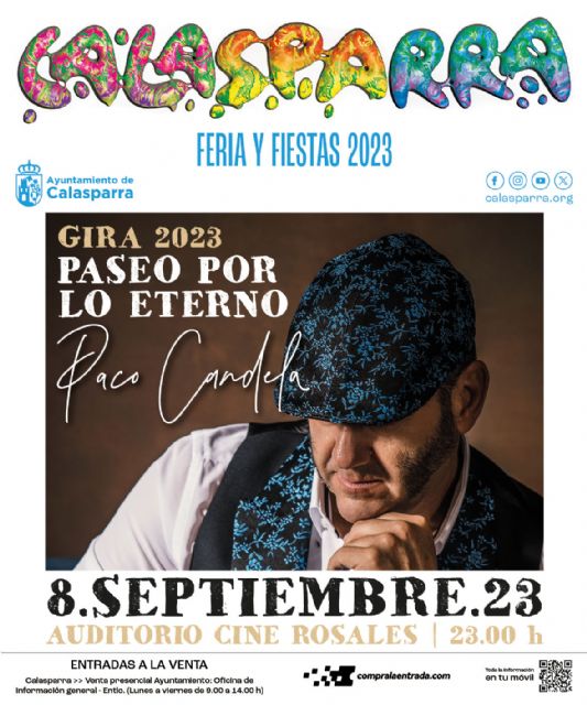 Paco Candela estará con su gira "Paseo por lo eterno" en la feria de Calasparra el viernes 8 de septiembre.