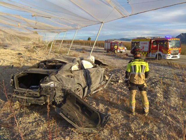 Los llamantes informaban de que un vehículo había dado vueltas de campana y había quedado volcado en el interior de un invernadero y que era necesaria la presencia de bomberos para el rescate.