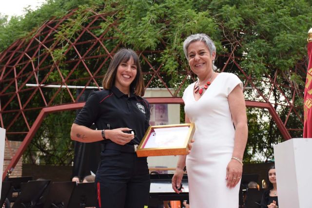 La calasparreña Laura Ibáñez recibió en la tarde de ayer, de manos de la alcaldesa de Calasparra, Teresa García, las Llaves de la Villa 2024 por su valentía, esfuerzo y dedicación, siendo la primera bombera del Consorcio de Extinción de Incendios y Salvamento de la Región de Murcia.