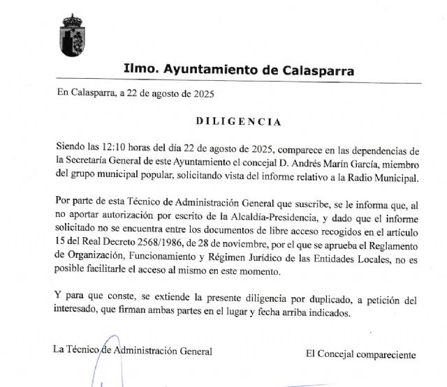 Se trata de un insulto intolerable a los vecinos de Calasparra, a quienes se les oculta deliberadamente la verdad y se les niega transparencia en la gestión de su dinero. El PSOE local debe dejar de esconderse: o muestra de inmediato el informe y las sintonías, o tendrá que rendir cuentas ante los tribunales.